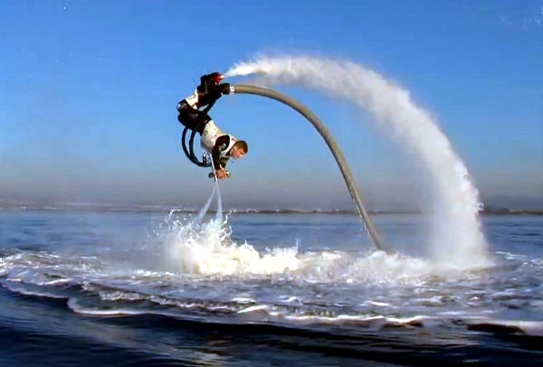 This is actually a promotional video of the Flyboard by Zapata Racing. It looks like something taken out of the amazing Spiderman , x-men or some other superhero shizznit!